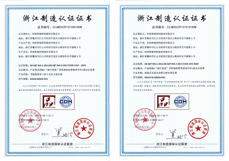 : 2022-08-068月5日,科潤智能控制股份有限公司的兩款產品----節能低噪音三相干式電力變壓器、油浸式非晶合金鐵心配電變壓器獲得“品字標浙江制造”認證。 …....