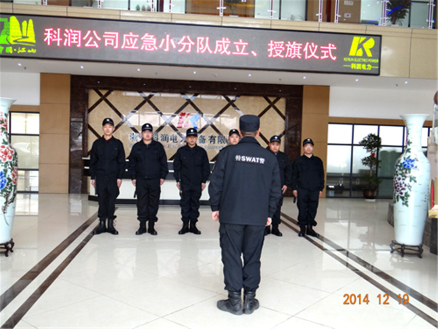 12月19日下午,科潤電力科技股份有限公司應急小分隊在公司一樓大廳舉行成立授旗儀式。公司總經理、各分廠、部門負責人、江山市公安局城南派出所、市特警大隊警官作為特邀警民對接指導嘉賓出席了成立儀式。成立儀式在的雄壯的國歌聲中開始。