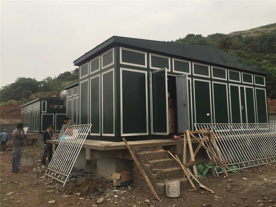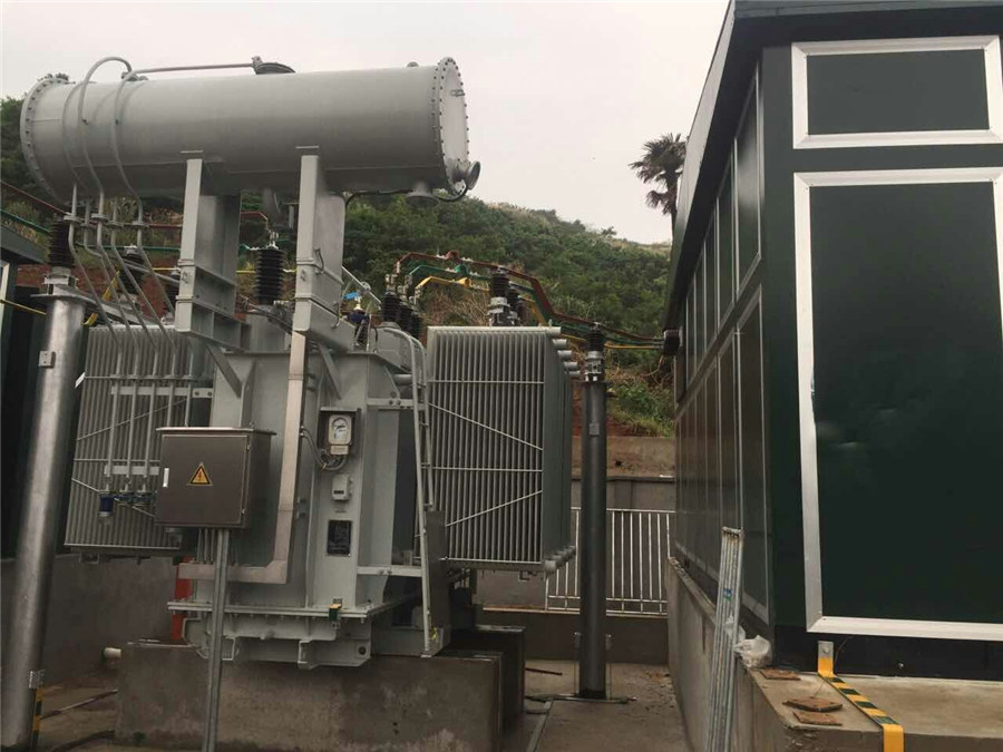 漁山島,地理位置偏僻,交通閉塞,安裝小分隊經過5小時的陸路,2小時水路,途中渡海因漲潮時間的不穩定,他們還在碼頭露宿了一夜,幾番周折,終于在22日中午12時抵達目的地。一到工地,他們便立即開啟了卸裝工作。受場地的限制,無法一次性將箱變卸下,而且據氣象預報分析,由于汛期已到,漁山島隨時可能遭遇大雨的突襲,箱變吊裝的工作刻不容緩。經過商議,安裝小分隊采取了邊卸邊裝的模式,作為隊里年齡最長的樂田光、姜剛友不顧自身安危,親自攀爬搭建箱變屋檐,經過2天2夜的奮戰,終于趕在大雨來臨前完成吊裝工作,為接下來的工作展開創造了較為有利的基礎條件。