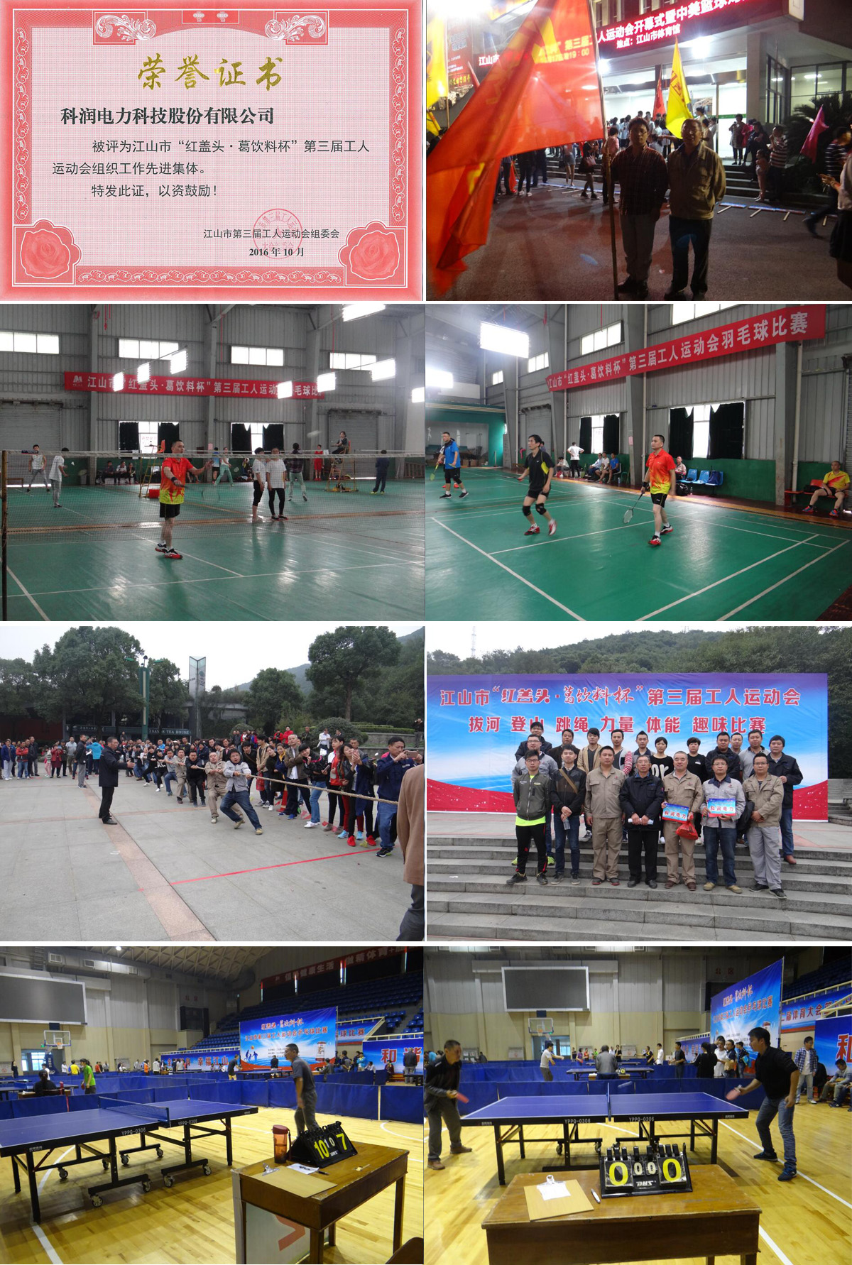 本屆運(yùn)動會由江山市人民政府主辦,江山市體育局、總工會承辦,浙江紅蓋頭農(nóng)業(yè)科技有限公司協(xié)辦。運(yùn)動會根據(jù)工人運(yùn)動的特點(diǎn),主要體現(xiàn)力量和團(tuán)隊(duì),設(shè)置了拔河、氣排球、體能、力量等12個(gè)大項(xiàng),吸引了來自全市各地的40支企業(yè)職工代表隊(duì)1739名運(yùn)動員參賽,共產(chǎn)生60個(gè)小項(xiàng)的金牌。 我司代表隊(duì)共有36名運(yùn)動員分別參加了羽毛球、乒乓球、拔河、登山、圍棋、跳繩比賽,獲得了羽毛球老總組男子單打金牌,羽毛球男子雙打第四名,拔河比賽第七名,登山比賽第八名。并獲得江山市“紅蓋頭·葛飲料杯”第三屆工人運(yùn)動會組織工作先進(jìn)集體。