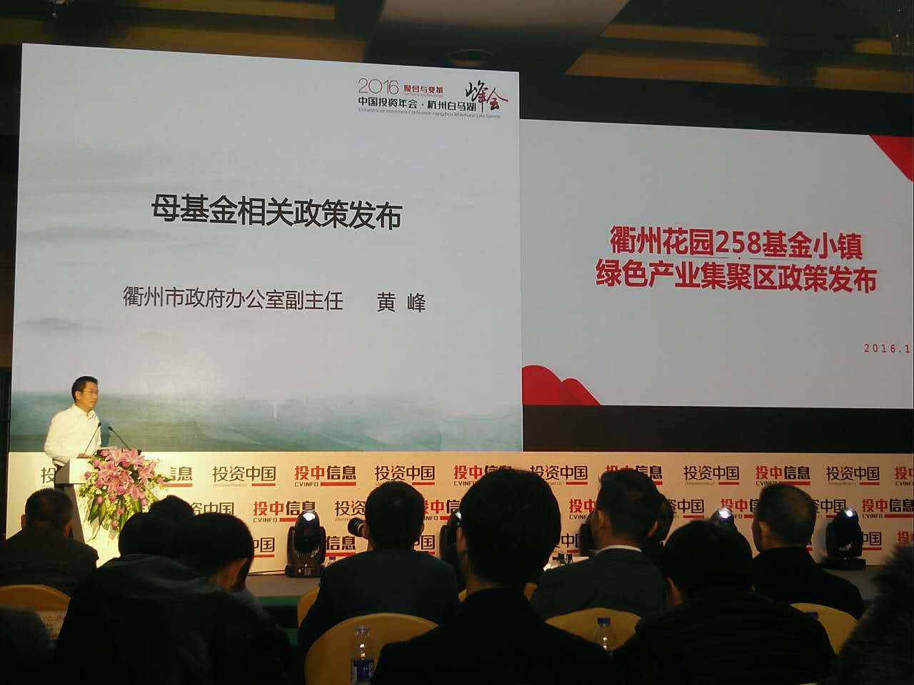 11月23日至24日,2016聚合與變革·中國投資年會·杭州白馬湖峰會在杭州召開。江山市副市長巫小雄率隊參加峰會,公司總經(jīng)理章群峰參加,并與相關投資公司進行意向對接 。