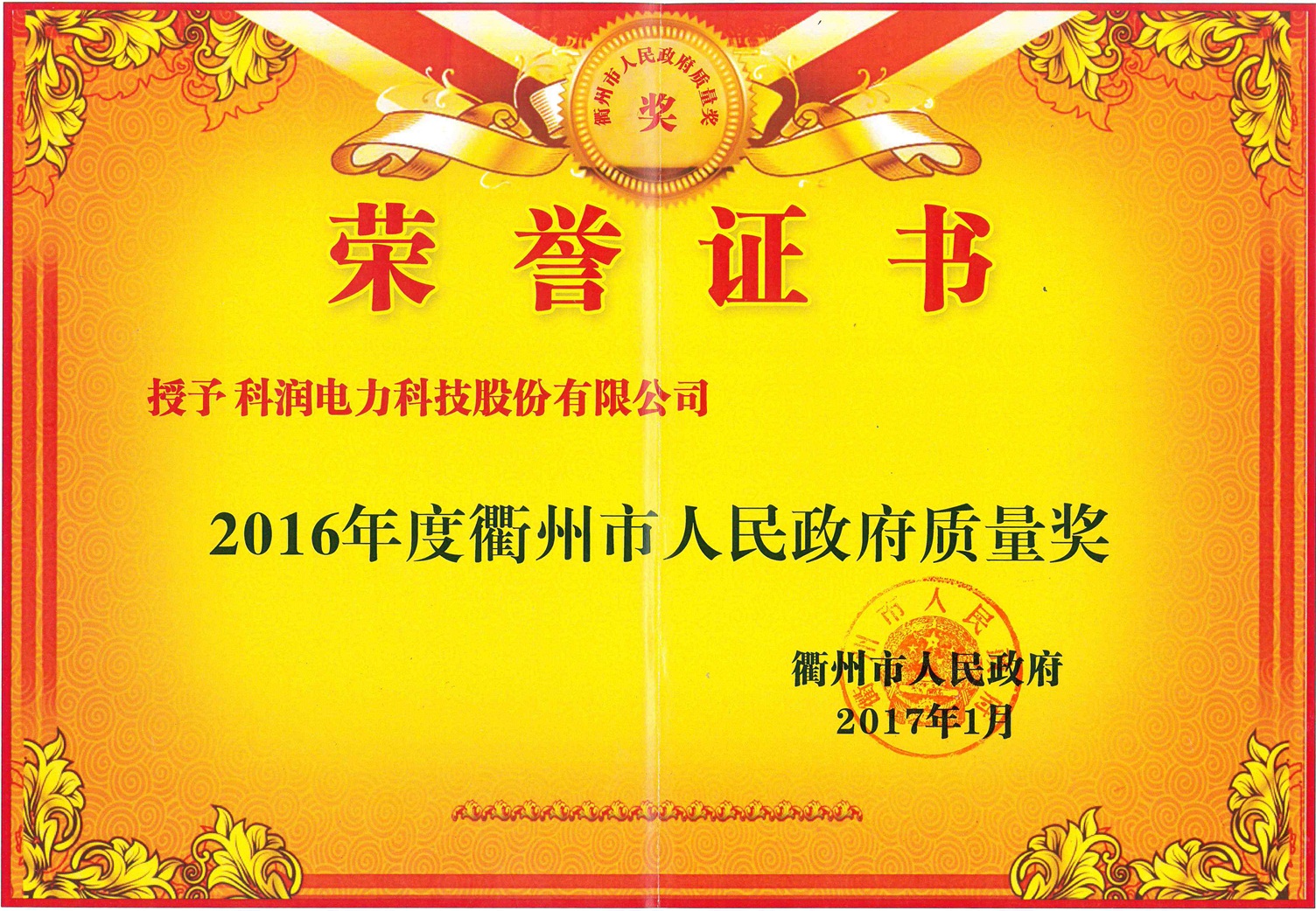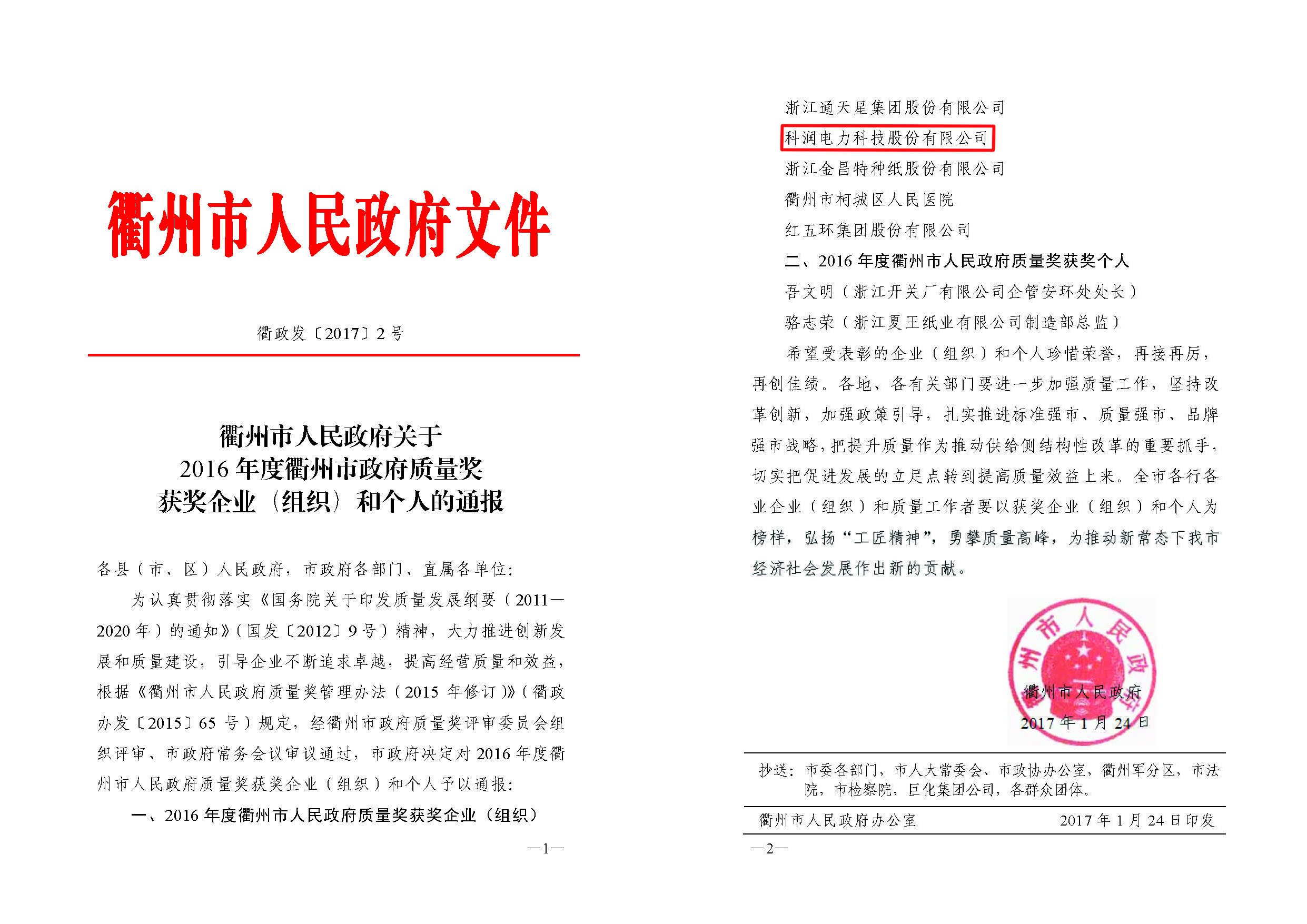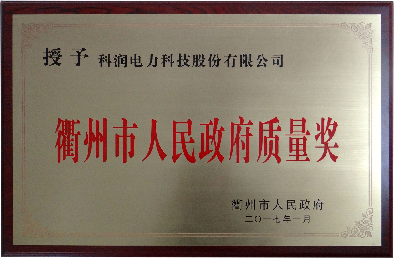 喜訊:科潤(rùn)電力獲評(píng)“衢州市人民政府質(zhì)量獎(jiǎng)”