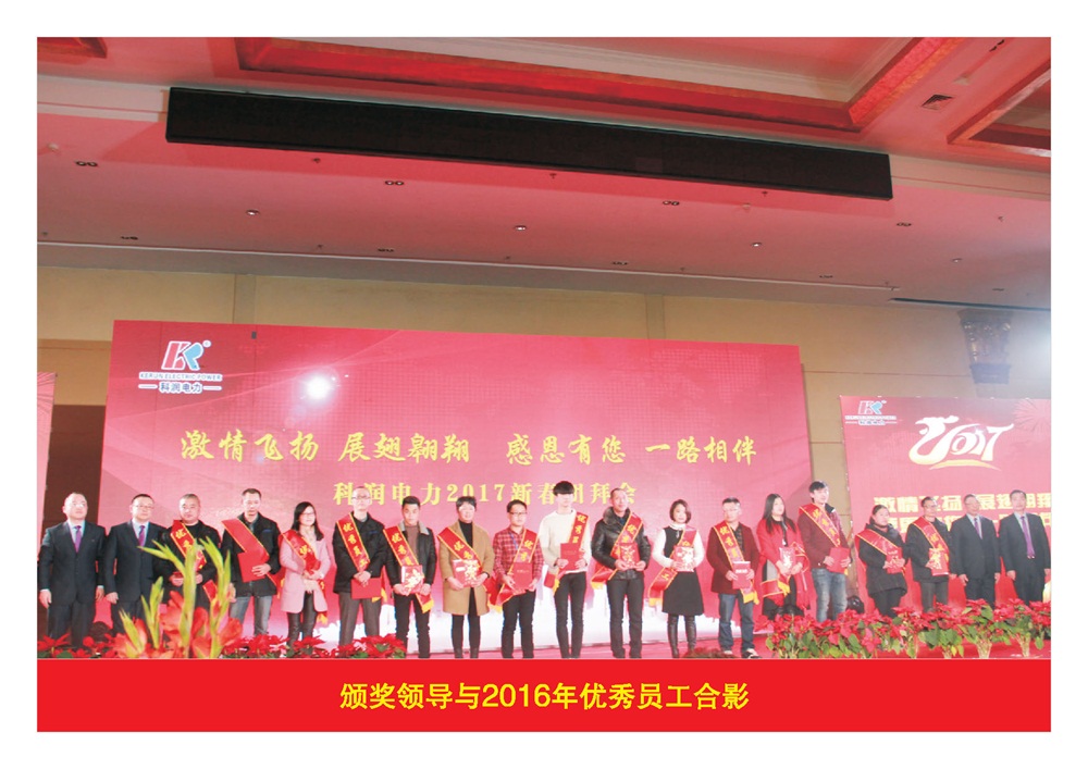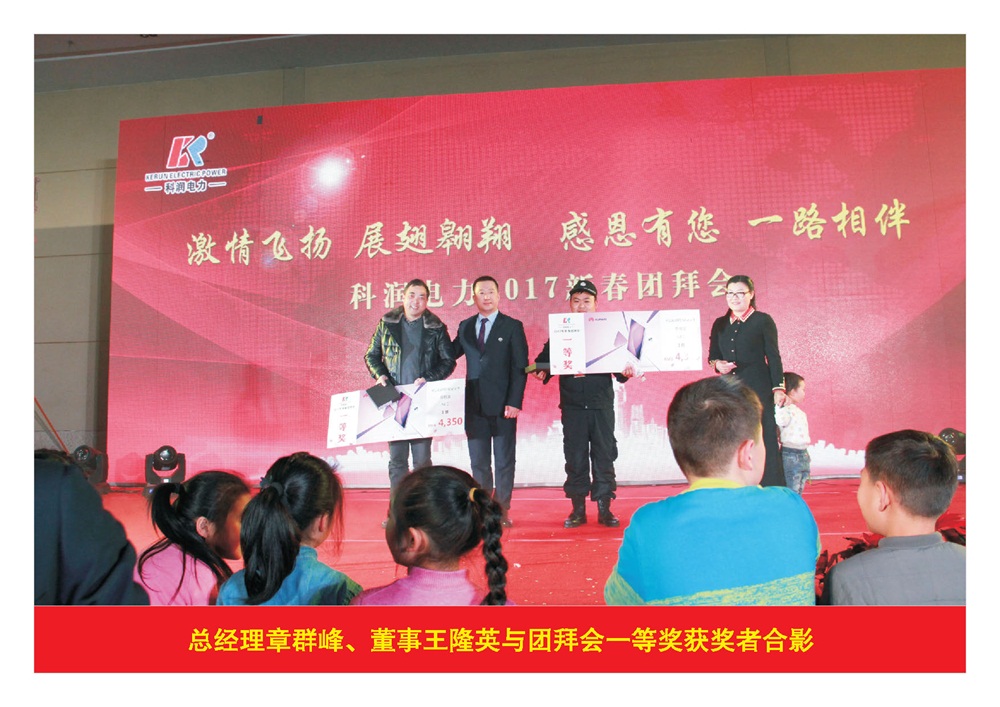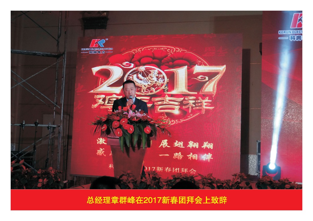 2017年1月20日,公司隆重舉辦了“激情飛揚(yáng) 展翅翱翔 感恩有您 一路相伴”科潤(rùn)電力2017新春團(tuán)拜會(huì),公司股東、領(lǐng)導(dǎo)及全體員工、家屬,近1000多人參加了團(tuán)拜會(huì)。