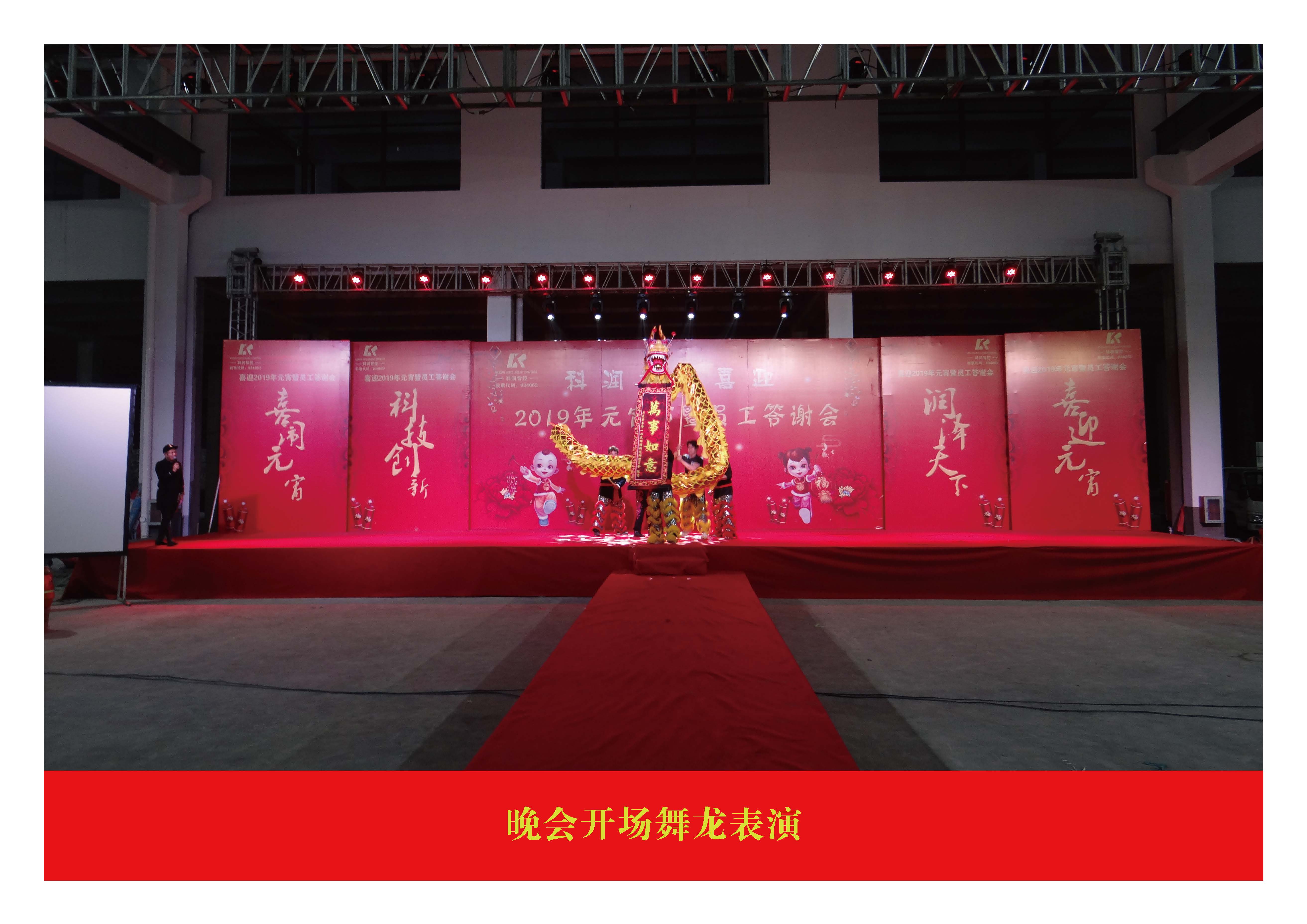 2019年2月17日下午4點30分,全體員工踏著四射的彩色燈光陸陸續續地進入了會場,并于簽到組簽到,接著在工作人員的指引下,按照安排的座位有序地入座。首先,大屏幕上播放了《創新發展》的VCR,回顧了2018年科潤的歷程發展,充分展現了公司的企業文化和文明精神。隨后,在全體員工的熱烈掌聲中,王榮董事長進行了熱情洋溢、信心滿滿的致詞,肯定了公司全體員工在2018年實現5個億產值的業績,也希望在2019年全體員工繼續努力,實現7個億的產值目標,為公司發展引領了方向,明確了目標任務,正式啟動了元宵節晚宴。晚宴開始的同時,抽獎活動穿插著各個精彩的表演也一并開始了。五等獎,四等獎,三等獎,二等獎,一等獎,特等獎的抽獎過程中,開場舞龍,結尾舞獅,中間穿插的科潤員工及其親戚子女精彩紛呈的才藝表演:歌唱,笛子演奏,小提琴演奏,為元宵節晚會帶來了高潮迭起的活躍氣氛。一開場,映入眼前的是一條金色的長龍,舞龍表演者在舞臺上快速地奔跑,敏捷地穿梭,每個動作都是那樣細致入微,淋漓盡致,他們的手臂急促地揮舞著,有力地揮舞著,大起大落的揮舞著。整齊一致的步伐踏出自信飛揚的一面。舞龍表演充分帶動了全體員工的高漲情緒,同時也彰示著科潤員工及其親戚子女即將一一為我們帶來意想不到的精彩表演。表演過程中,表演者偶爾為大家投擲精致的大小不一的小玩偶,也是現場一道亮麗的風景線。尤其,現在的小朋友們,真是兩眼放光的狀態,著實逗樂了一眾旁人。吳枵熠的童聲歌唱,董炫辰的笛子演奏,周曉玲的《新貴妃醉酒》,銷售經理嚴小榮的《像夢一樣自由》,總經理章群峰的《步步高》,董事長王榮的《千紙鶴》,都為我們展示了不一樣自我與風采。最后,在舞獅歡喜鬧元宵及美好的祝福下,王榮董事長為晚會結束獻上了最后的發言,提早祝福全體員工元宵節快樂,希望公司能夠未來宏圖大展,步步高升!