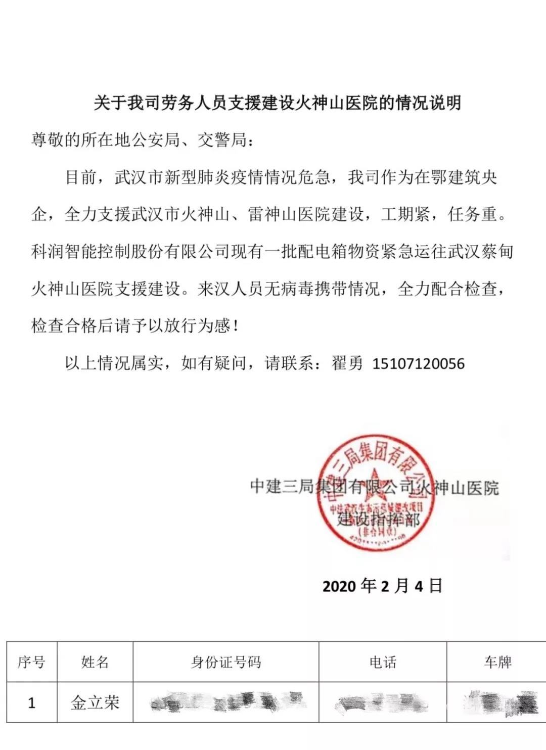火神山醫院自2月2日建成交付使用后,負責相關電力設備安裝的中建三局集團有限公司考慮醫院單向送電的不保險,希望采購一批設備加強院區備用電力的保障。科潤智能控制股份有限公司作為合作單位,接到通知后第一時間統籌調劑庫存,與疫情“賽跑”。