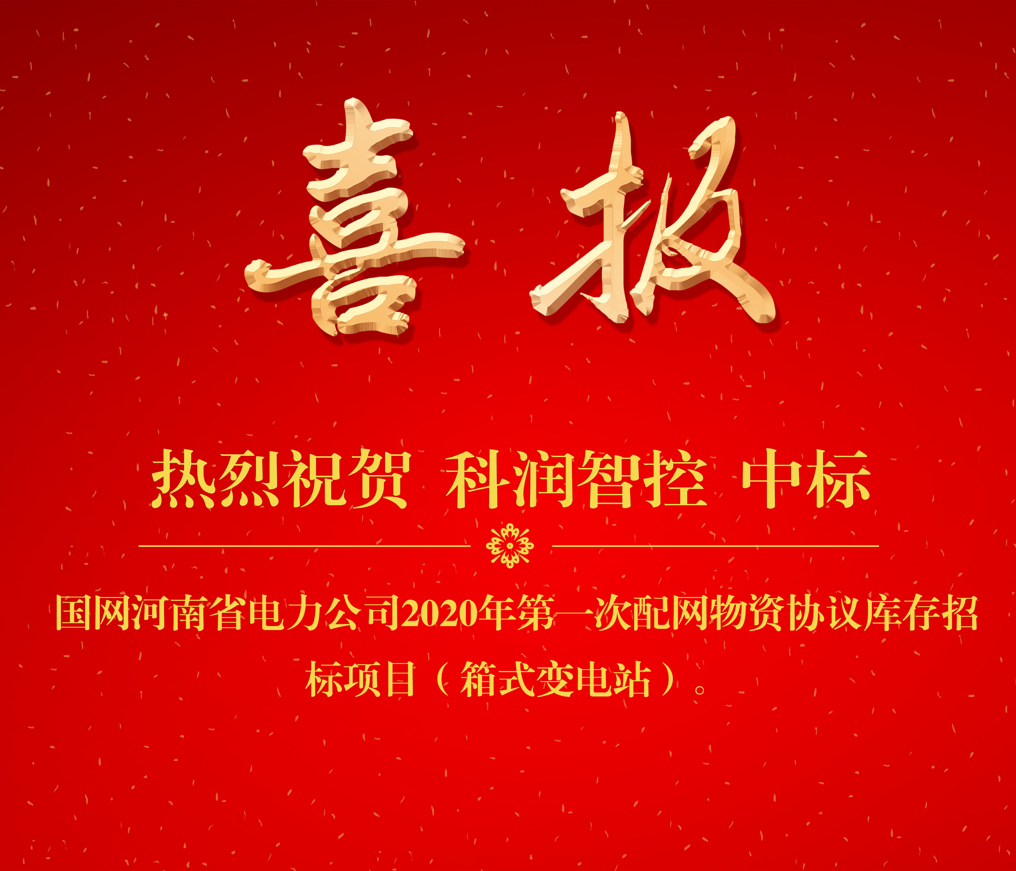 熱烈祝賀我司中標國網河南省電力公司2020年第一次配網物資協議庫存招標項目(箱式變電站)。