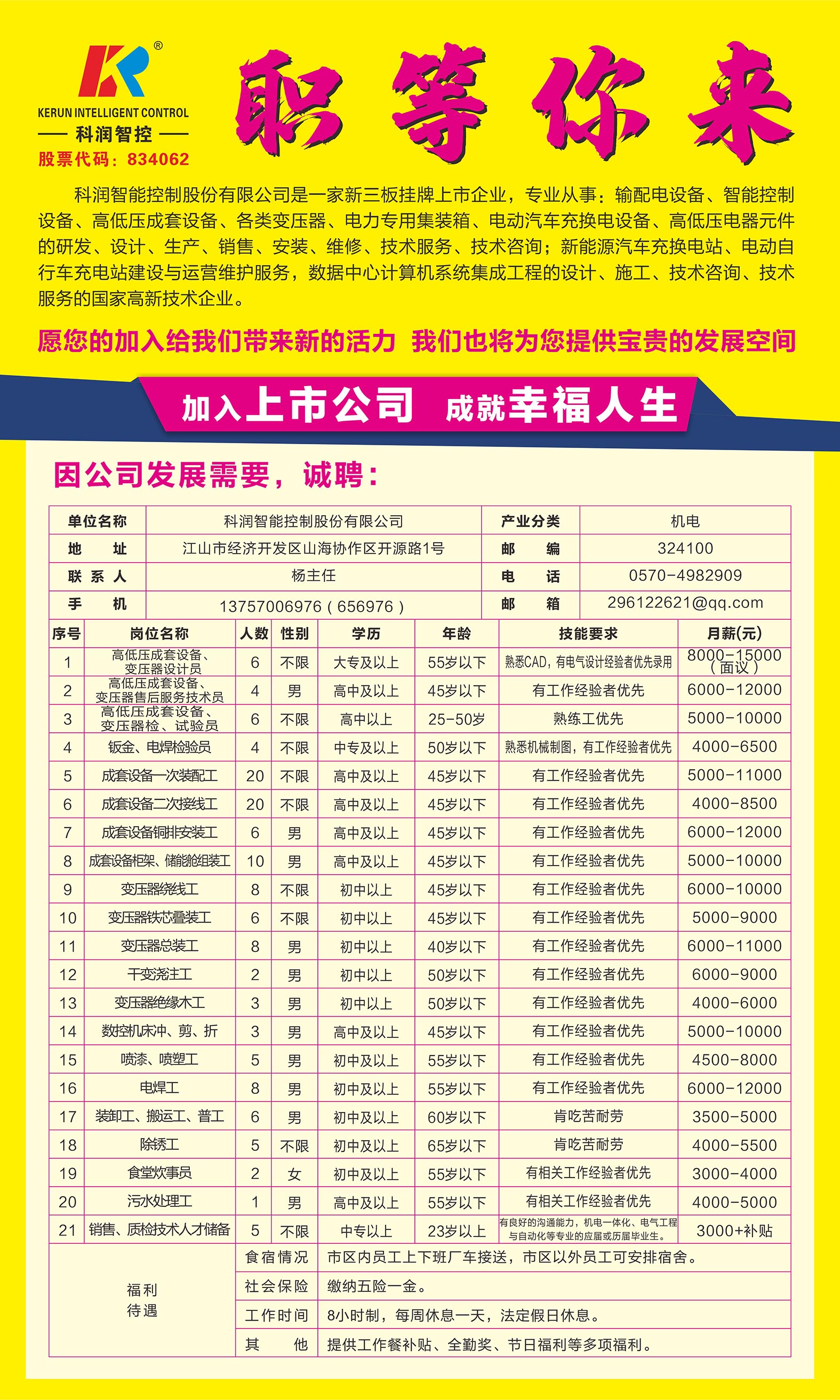 科潤智控,招賢納士,職等你來