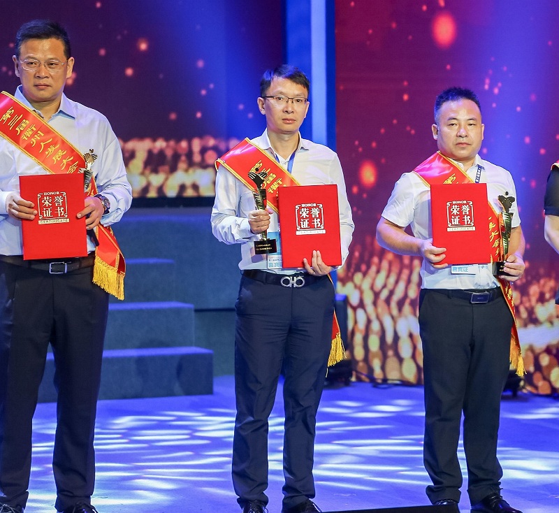 科潤智控新投建的高端裝備產業園被評選為年度鄉賢回歸榜樣項目,董事長王榮代表公司參加大會并上臺領獎,市四套班子領導一同合影。