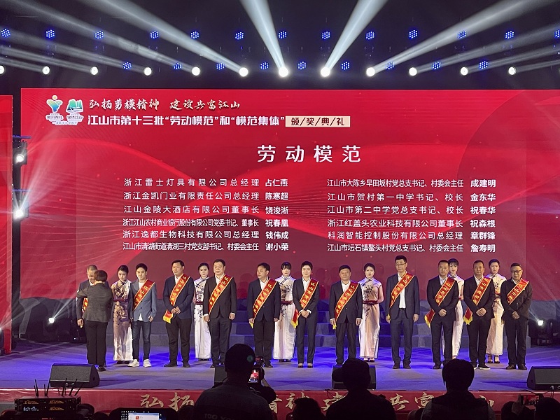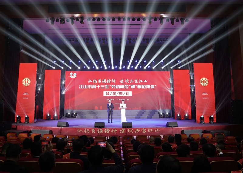 4月28日下午,江山市舉行第十三批“勞動模范”和“模范集體”頒獎典禮,充分調動全市勞動者秉承和弘揚勞模精神、勞動精神,積極投身經濟社會發展大局,在“奮力打造三省邊際展示中國式現代化浙江篇章衢州實踐的示范窗口”中凝聚前行合力,激發創造活力,為實現“衢州當龍頭、全省爭上游”目標貢獻力量。市委書記朱素芳致辭,市領導何日根、朱永平、毛正彩、周立武等參加,公司總經理章群峰獲評“勞動模范”榮譽稱號上臺領獎并發言。