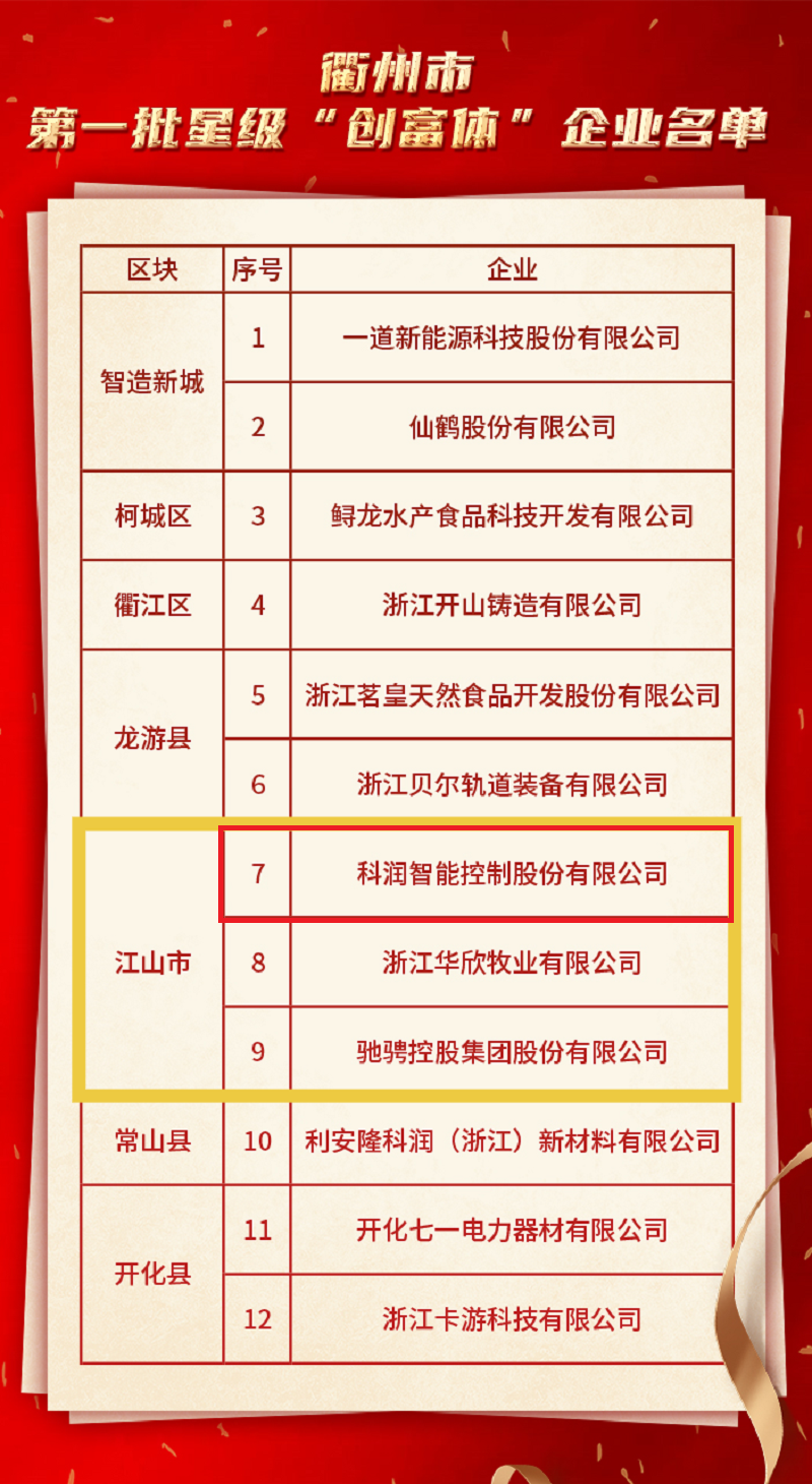 近日,衢州市委社建委開展了衢州市星級“創富體”企業評選工作。經企業自愿申報、各縣(市、區)委社建委推薦、市級專家組復審、市級相關部門公示和征求意見,科潤智控獲評衢州星級“創富體”企業。