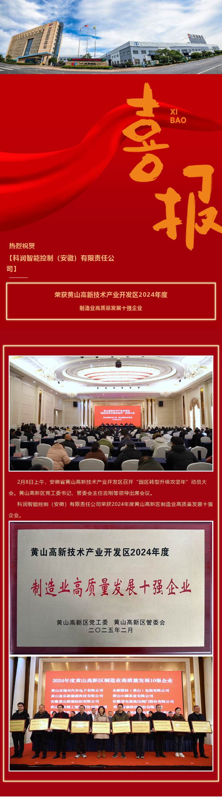 喜報|科潤智控(安徽)公司獲評黃山高新區2024年度制造業高質量發展十強企業
